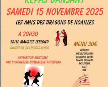 SOIRÉE REPAS DANSANT 13 octobre 2025 22 octobre 2025Annonce-prestation 15 NOVEMBRE 2025 A 20H30 LIEN RÉSERVATION CI-DESSOUS https://www.helloasso.com/associations/les-amis-des-dragons-de-noailles/evenements/soiree-repas-dansant-les-amis-des-dragons Lire la suite